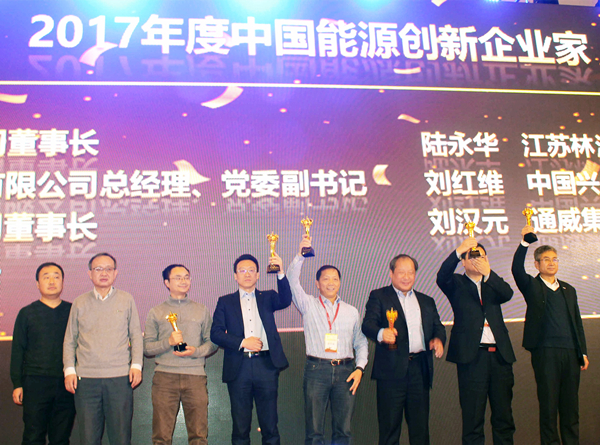 劉漢元主席榮獲“2017年度中國能源創(chuàng)新企業(yè)家”殊榮,通威股份光伏事業(yè)部總裁陳星宇代為領(lǐng)獎(jiǎng)