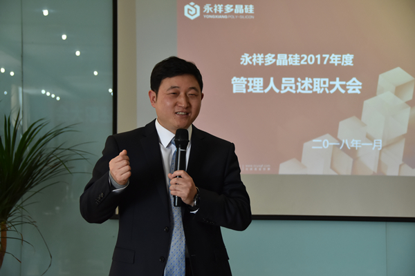 1月11日,永祥多晶硅2017年中層干部年終述職大會成功召開。通威股份董事、永祥股份董事長兼總經理段雍,永祥股份財務總監周斌,永祥多晶硅執行總經理袁中華,永祥股份副總經理兼永祥多晶硅副總經理禚東舉,永祥股份安全環保總監羅海釗,永祥多晶硅副總經理汪云清出席會議。