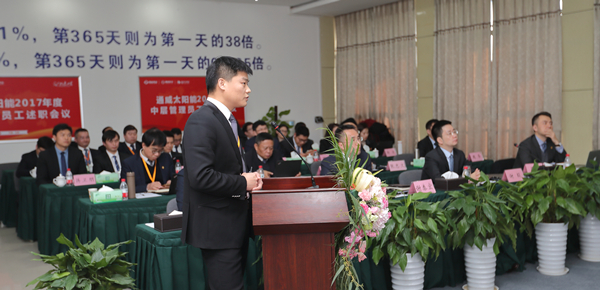 1月8日、10日,通威太陽(yáng)能2017年度述職大會(huì)暨2017年度總結(jié)大會(huì)分別于成都、合肥兩地公司順利召開(kāi),通威太陽(yáng)能董事長(zhǎng)謝毅及高管團(tuán)隊(duì)出席兩地會(huì)議。